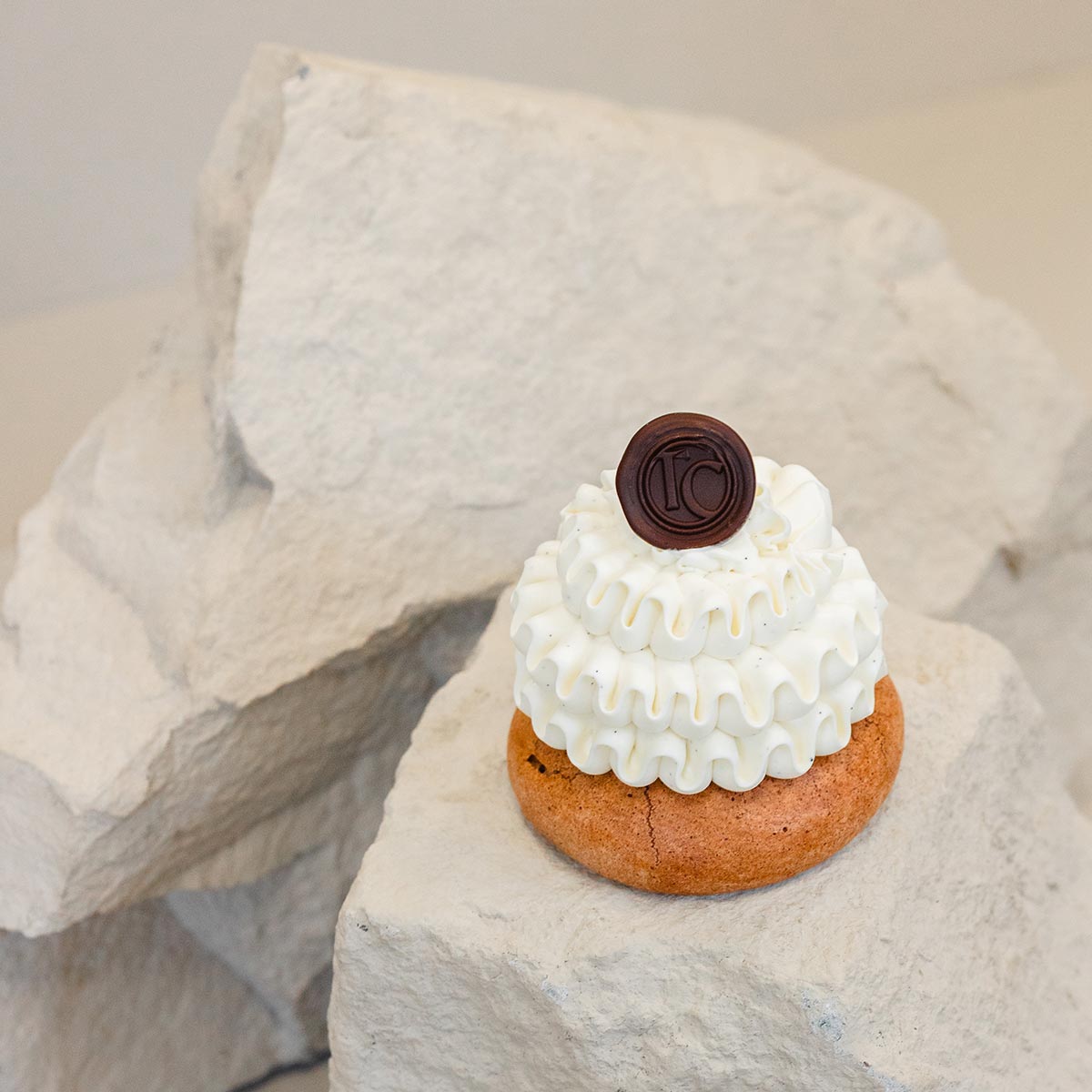 Une pâte à choux fourrée d’un praliné noisette du Piémont et de grué cacao de la maison Carrack, une combinaison unique d’arômes doux et puissants.