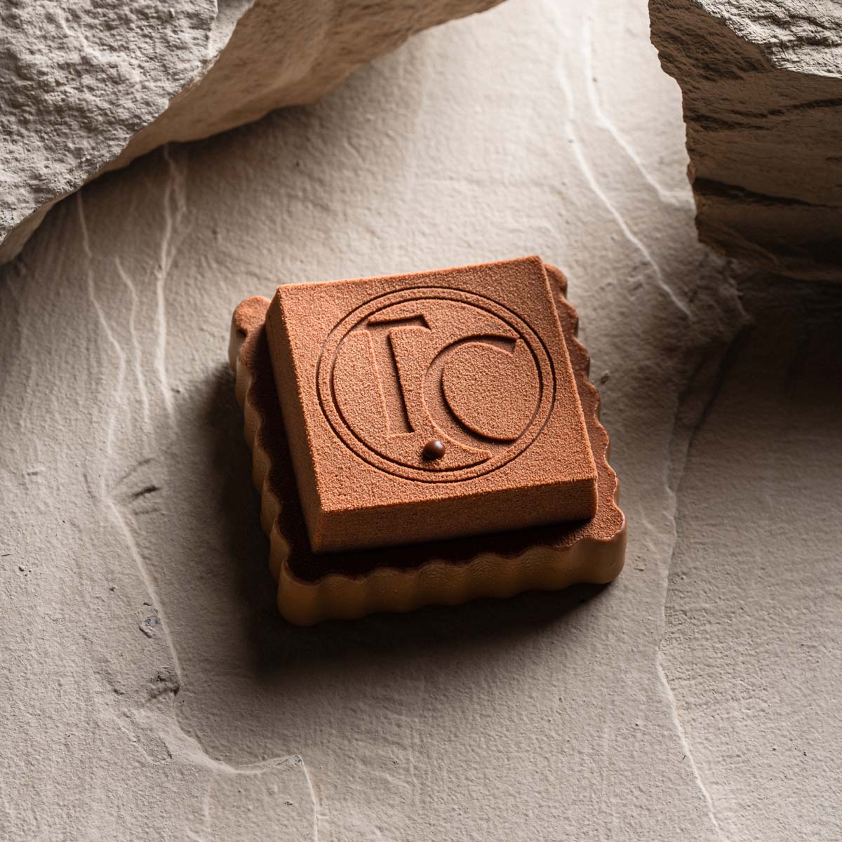 C’est une création inspirée par les souvenirs d’enfance nantais de Yohan Coiffard. Ce petit biscuit de voyage se décline sur des variétés de sablés, nature, chocolat ou pistache ainsi qu’en version géante pour les anniversaires. Le carré chocolat est signé Orfève, qui transforme les fèves de cacao les plus nobles en un chocolat puissant et délicat dans son atelier genevois. Tout chocolat dispose d’une multitude de versions qui évolueront selon les inspirations et les saisons pour satisfaire tous les goûts.