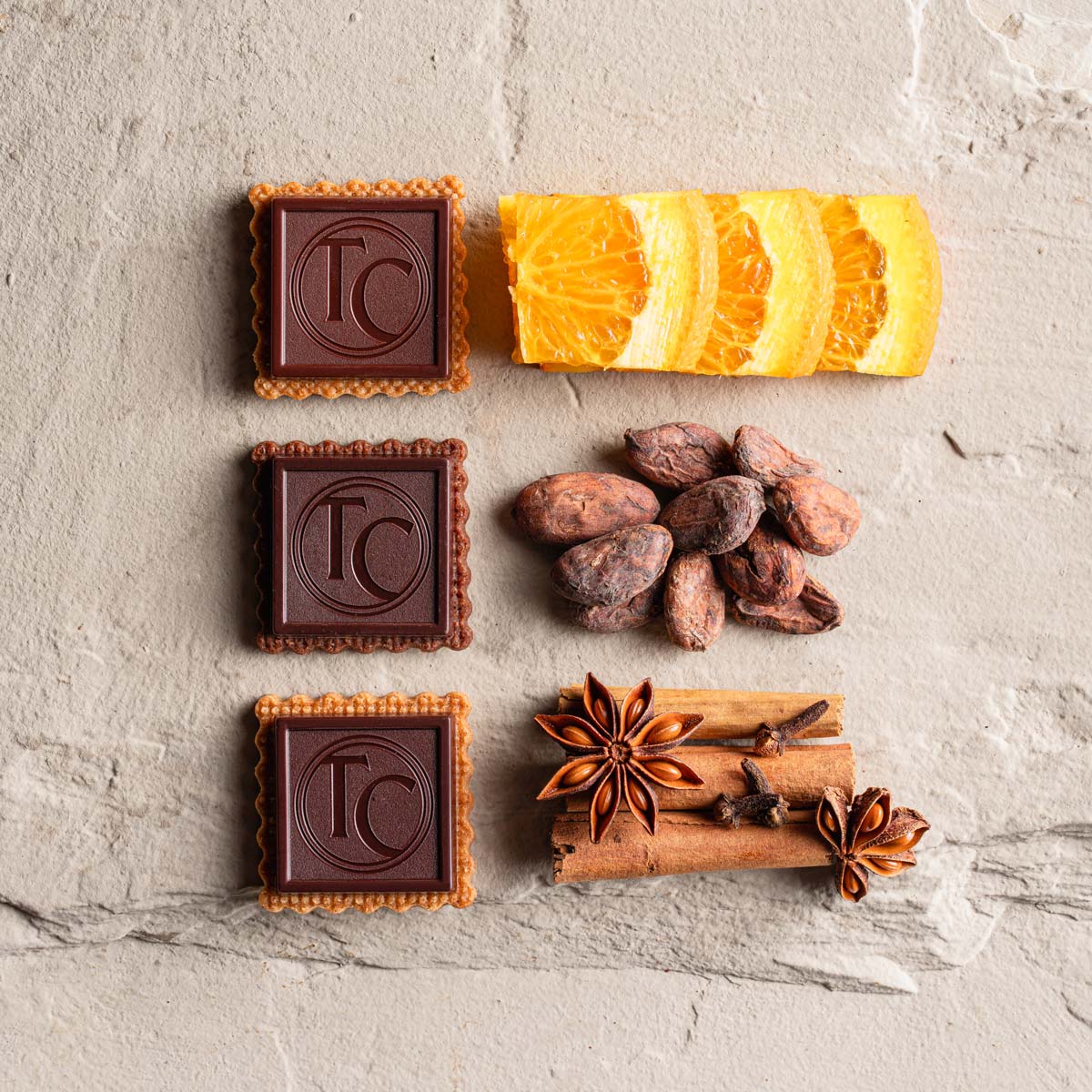 Le Carré se décline en édition de Noël avec trois saveurs: un sablé aux épices, un sablé cacao et un sablé orange. Une délicieuse mise en bouche des fêtes, à savourer soi-même ou à offrir.