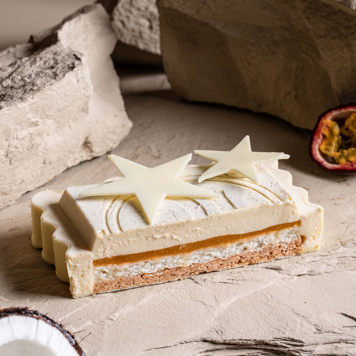 Sous son manteau immaculé: dacquoise coco, croustillant praliné coco, coulis de fruits de la passion pour le pep’s, et mousse au chocolat blanc parfumée à la vanille, l’épice favorite du chef. Une création d’une délicate légèreté, qui associe douceur, exotisme et élégance. Les deux bûches seront disponibles en édition limitée, jusqu’au 24 décembre à 16h00, pour sublimer les tables de fête les plus gourmandes.